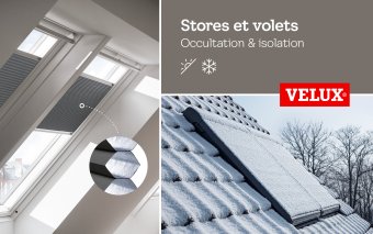Confort et économies d’énergie grâce aux stores et volets VELUX : chaleur dedans, froid dehors, occultation optimale.